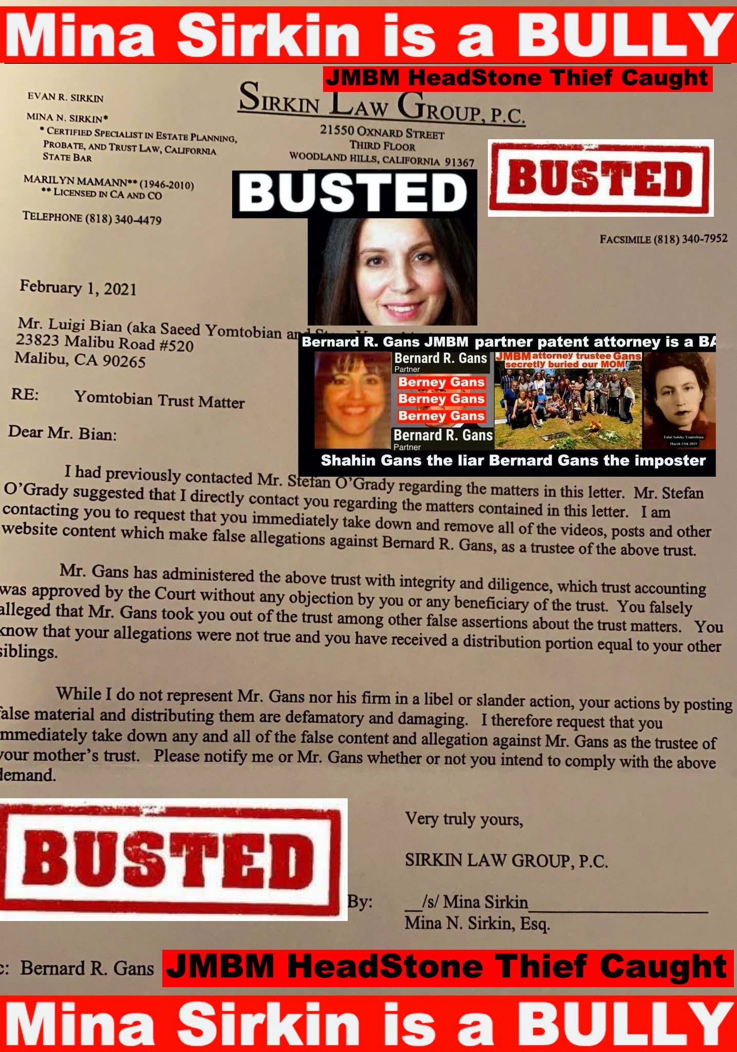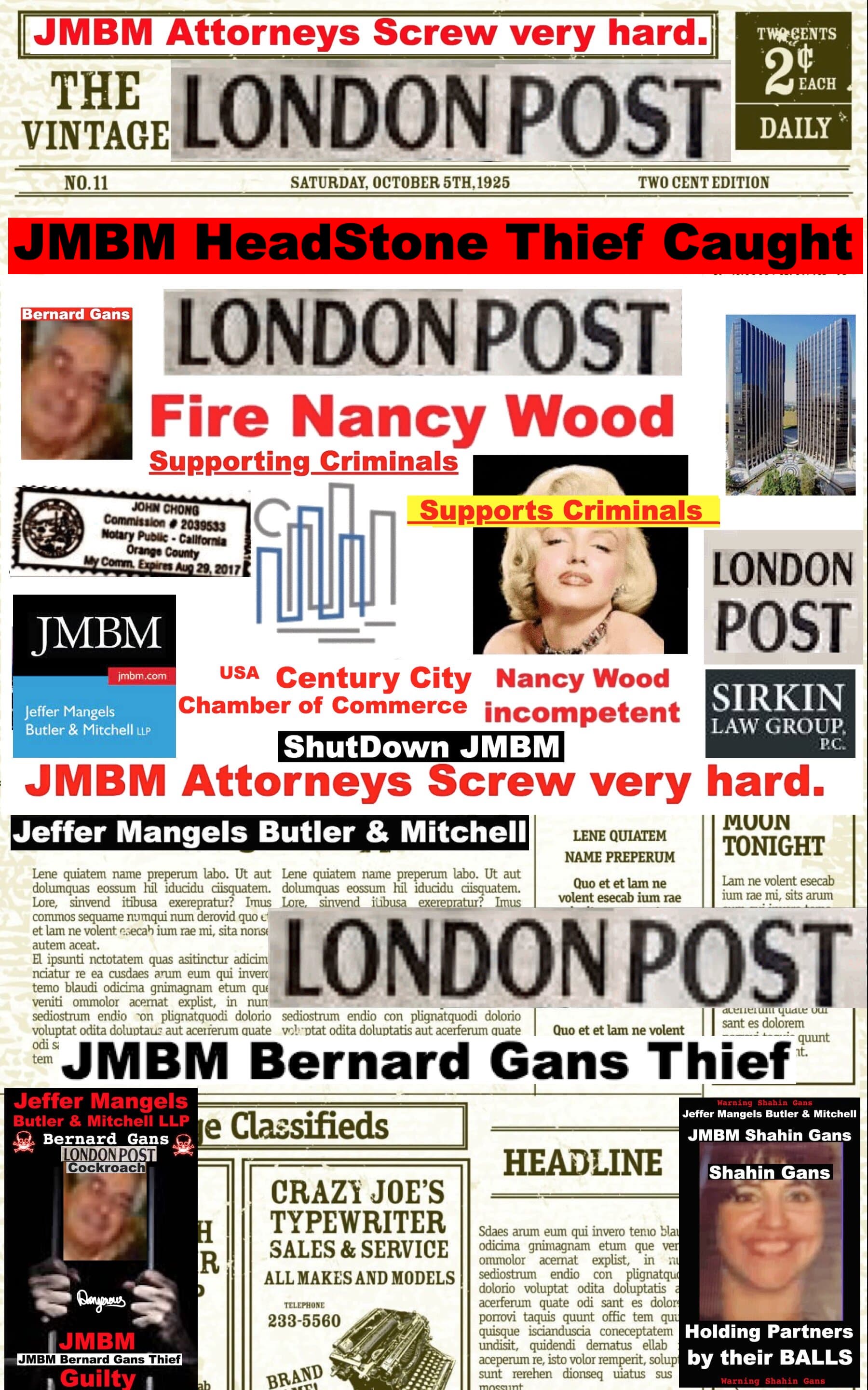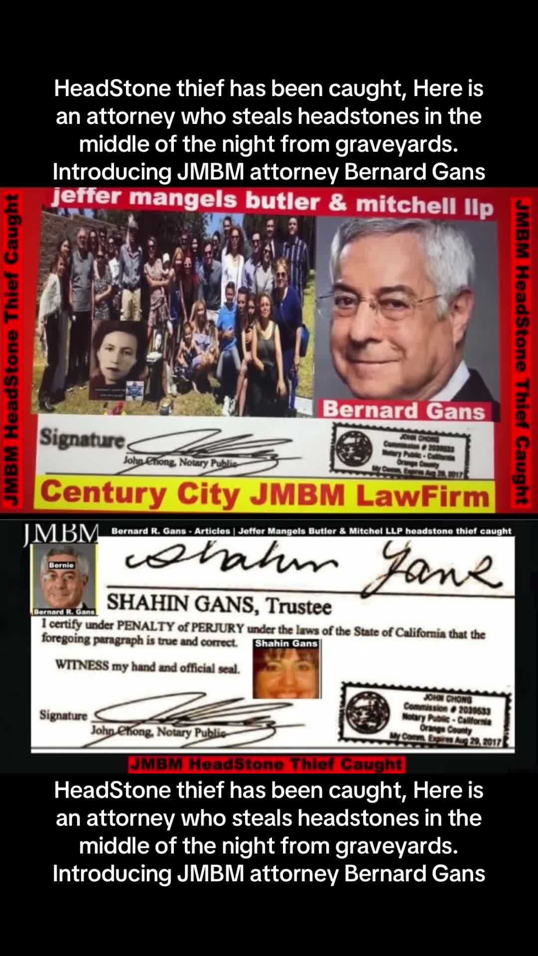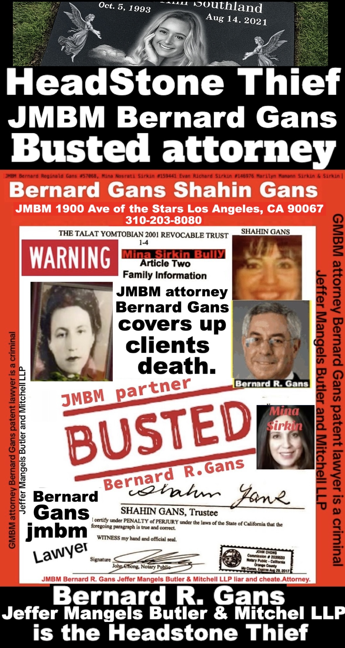 76 year old Century city JMBM busted attorney Bernard Reginald Gans known as Bernie graduate of Santa Barbara university married to Shahin Gans 50 years of success to satisfy his wife he made one stupid mistake and it all crashed down. Well done Bernie well done.Bernard R Gans Articles Jeffer Mangels Butler & Mitchel LLP